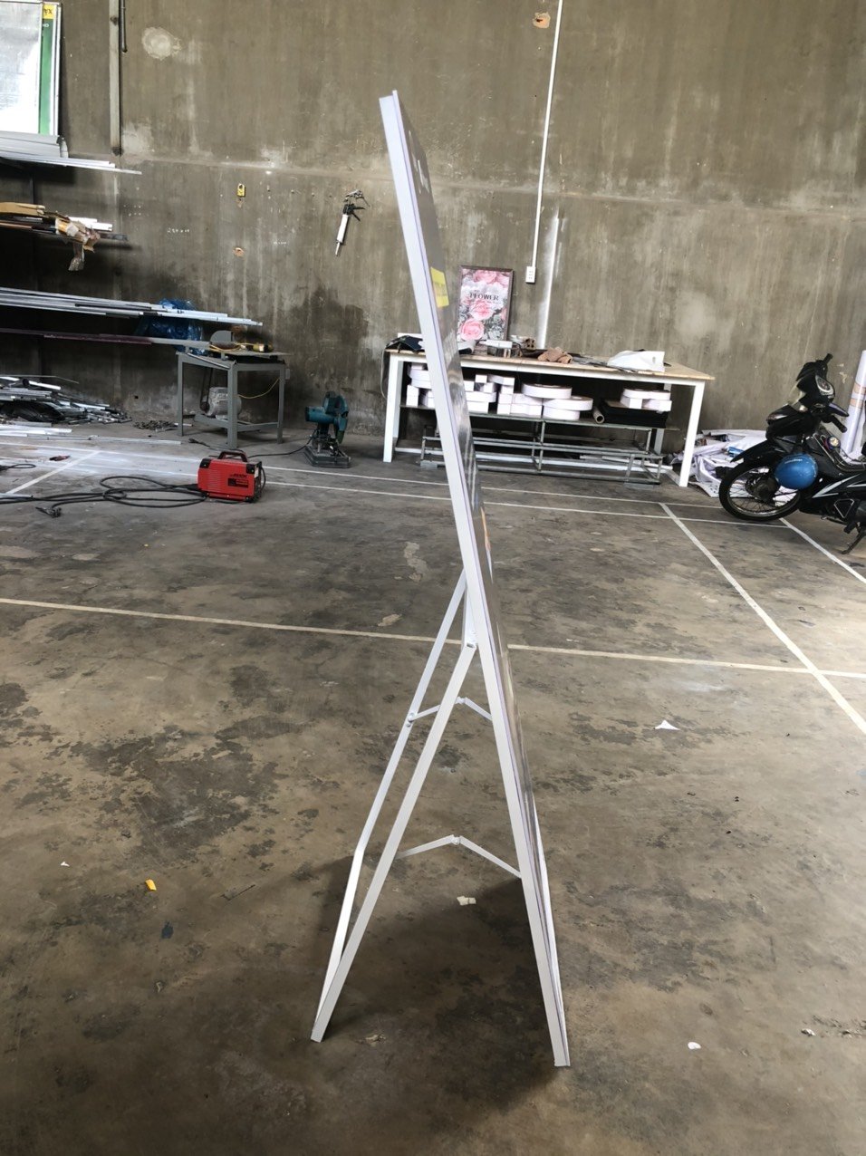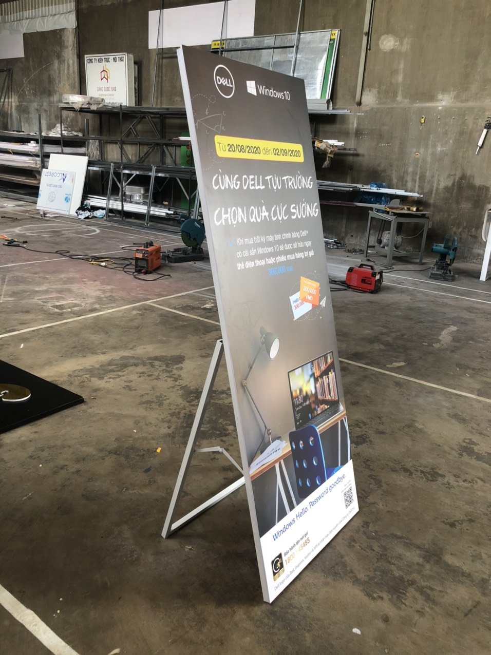 - Dễ di chuyển và dễ lắp đặt: Standee chữ A có thiết kế gọn nhẹ và có thể gấp gọn. Giúp dễ dàng di chuyển và lắp đặt ở nhiều vị trí khác nhau. Điều này mang lại sự linh hoạt và thuận tiện khi sử dụng trong các buổi triển lãm, các sự kiện…